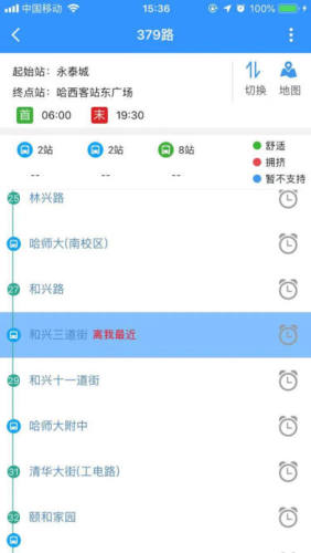 查询当前位置附近站点及经过站点的公交线路列表;用户可反馈意见与建议等等。