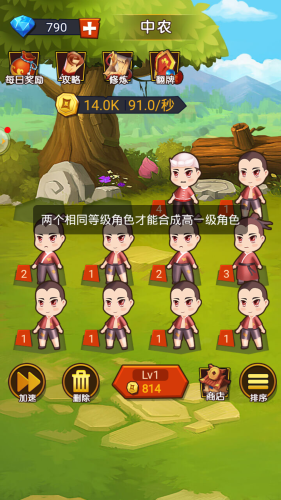 将两个相同等级的角色拖拽到一起,就可以合并成更高一级的角色;