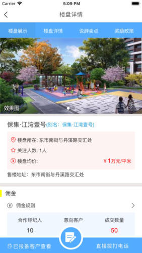 楼盘详情、客户信息一网打尽,报备带看后保护期内客户动态随时掌握,最大化的保护经纪人劳动成果。佣金业绩、热门活动尽在掌握。