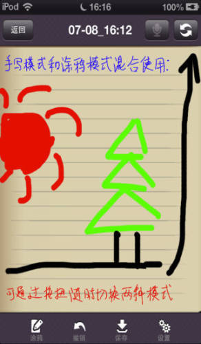 5、你可以在涂鸦模式和书写模式之间进行切换。