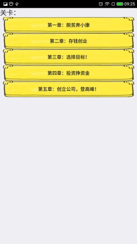 4、五个章节包括脱贫奔小康,存钱创业,选择目标,投资挣资金和创立公司登高峰,因此游戏的内容还是挺丰富的;