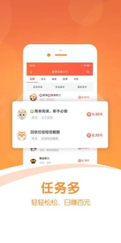 任务类型多:提供的任务类型多种多样,用户自由挑选,轻轻松松赚钱;