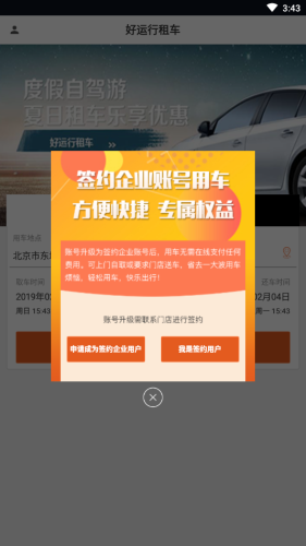 好运行租车是一款超棒的租车软件。使用好运行租车app,就能为你提供个人用车服务和签约企业用车服务,超多汽车在线任你选择,让你出行更方便。平台可以租借的车型多,收费合理。想要体验一下的朋友快来下载吧!