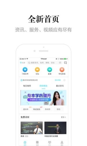 自考365网官网专注于自学考试复习服务的学习软件。自考365app拥有国内一线名师在线授课,学员们可以在线发送学习上的难题,自考365网校。提供课程在线下载服务,自考365平台方便自考学员们随时通过手机端学习。