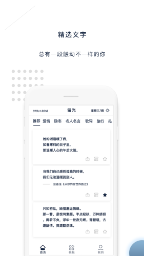 多种个性模板,可根据自己的喜好编辑成精美日签并分享给QQ、微信好友、微博等