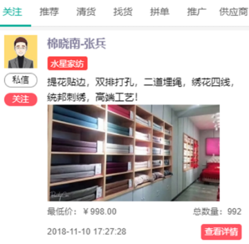 轻库是一款基于家纺库存,通过清货、找货、推广、拼单等功能,帮助家纺零售商降低闲置库存轻库的软件。APP专注于家纺行业的库存问题,深耕家纺内容领域,在家纺供应商与零售商之间架起沟通的桥梁,注册用户为家纺零售商,可以发布“清货”和“找货”,在后台设置优质供应商,可以发布拼单和推广信息。
