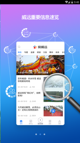 威远官方发布的一款集图文新闻、视频、直播等一体的新闻APP。