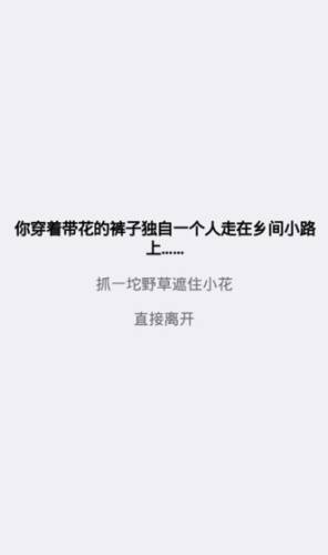 一款文字类休闲娱乐游戏。某一天,你穿着带花的裤子肚子一个人走在了乡间小路上,突然你心血来潮抓起一坨野草遮住小花,于是你被草里的毒蛇咬了一口?不对,剧本好像不是这么写的,还是由你亲自动手完成吧!