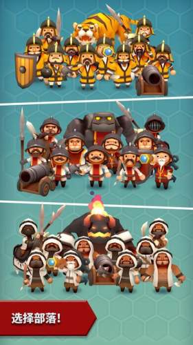 操作玩法上手很简单,首先选择你喜欢的部落建立王国,探索世界,扩张领土;