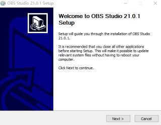 a、必须先安装主程序:OBS-Studio-20.1.3-Full-Installer.exe,默认路径安装,安装之后不要运行。