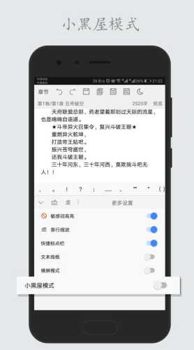 【小黑屋模式】这是为作家们强制自己码字所打造的一种模式,在该模式下码字姬将会被锁定,无法退出,无法返回,您必须手动输入规定的字数后才可以解除该模式。