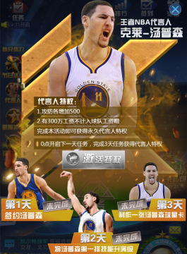 篮球总是Amazing,新版本的玩家可以通过简单日常的任务就可以签约克莱汤普森,这是一个大大的代言特权福利哦!