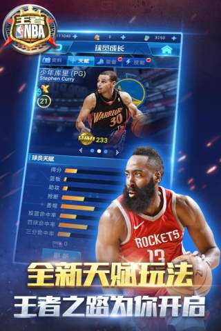 《王者NBA》是全球首款采用职业联赛真实数据进行同步变化的体育类模拟经营手机游戏,玩家可在游戏中收集球员进行比赛,畅享篮球游戏的乐趣。游戏以篮球联赛为背景,在游戏中玩家将扮演一名职业篮球经理人,签约篮球巨星组建强力的梦幻阵容去争夺篮球场上的至高荣耀。游戏的主要内容是阵容搭配,球员选择,比赛场上的指挥调度,战术变化,球队装备强化,追求低薪球员等。