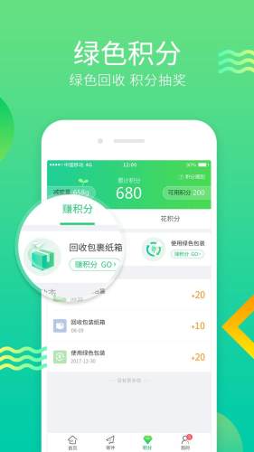 4、绿色积分 - 利用绿色包裹回收和使用绿色包裹寄件方式,赚取绿色积分