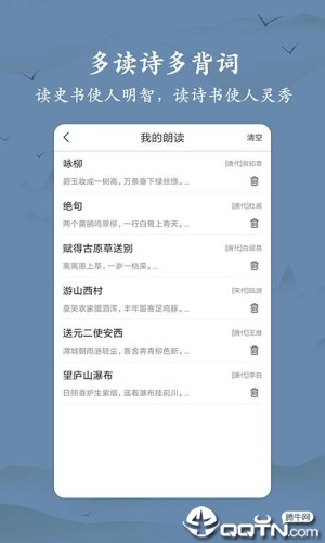 1. 新增诗词朗读功能,多读诗,腹有诗书气自华