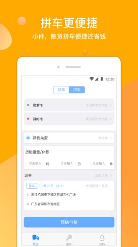 货来拉是一款提高物流效率的App,用于对大众或中小型公司的货物运输服务,用户在平台进行约车服务,从而支付运费.车主通过平台进行对订单的接送服务,完成后可在平台提现运输费用,功能包含线上约车,支付,提现等功能。