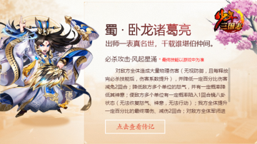 【军师出山 智破千军】军师系统首度上线,开创卡牌游戏8V8全新对战模式。四大军师联袂出山,专属大招巧胜劲敌,鼓舞士气全军突击!