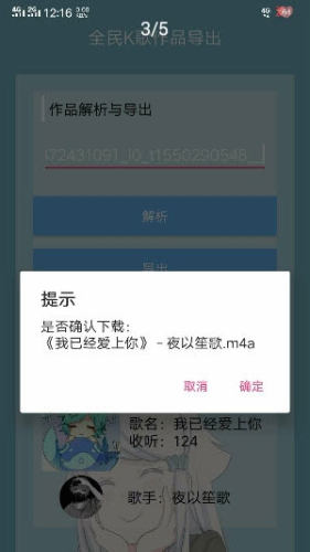 4.点击导出→确定即可下载音乐到手机文件夹内