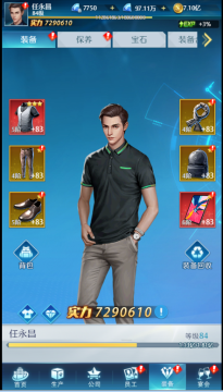 装备是总裁实力提升的核心,装备的珍稀程度由低到高分为绿蓝紫橙红色,装备阶级代表装备的等级划分,一件装备一共有12阶,装备区分星级,代表装备进阶的程度,一件装备最多为三星。
