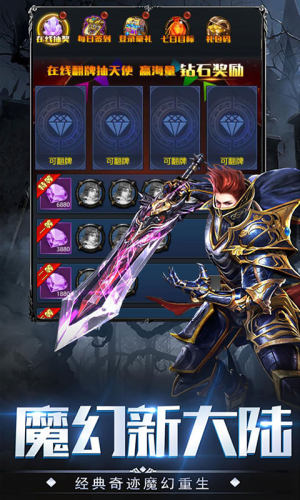 1、上线既是贵族10,完成新手任务赠送钻石28888、金币百万