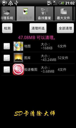 SD卡清理器是一款专业的储存卡垃圾文件清理工具,可以像浏览器清理一样,清理各种缓存、临时文件,可以对你的SD卡进行大扫除,可以下载试试。