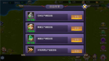 在群雄逐鹿地图中,我们可以通过点击增益效果来获得收集资源的加速buff,当然是要花费元宝的,但是用少量的元宝换取几个小时的资源加速时间,相信大家都会做出取舍。