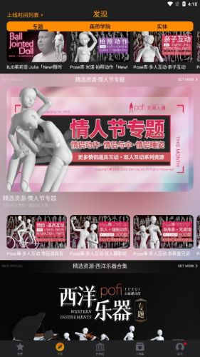 无限量定期更新绘画资源素材,包括三维可动人偶、静态虚拟手办、动作、动画、手势、材质、发型主题包、道具主题包、场景主题包等。