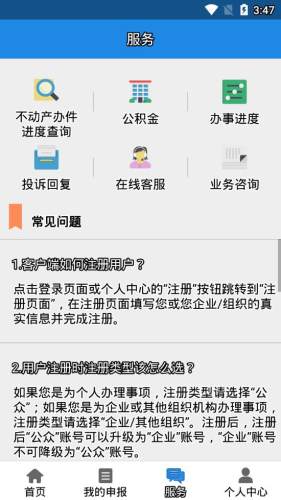 哈尔滨政务服务包含网上事项申报,公共服务,便民服务,公共支付,“不见面”审批等多功能于一体的移动端政务服务申报平台。