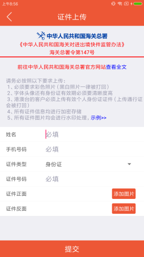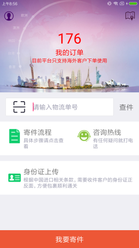 寄送国际快递时需要上传收件人的身份证正反面照片;