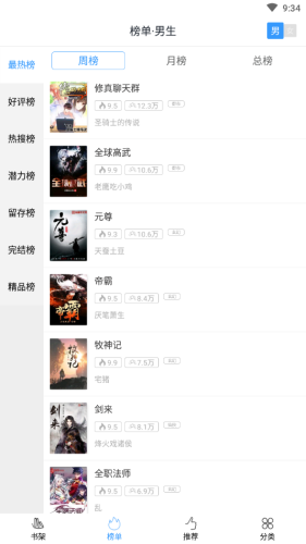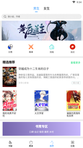 3、支持完结以及多种题材,分类详细,可以一键搜索喜欢的书籍。