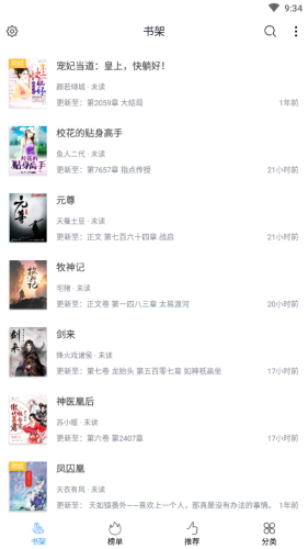 2、支持的小说资源很丰富,书架轻松管理,还有更新提醒;