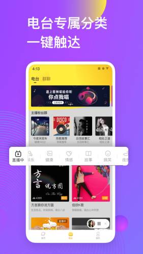 4、手机息屏:手机息屏后可继续开播节目或收听直播;