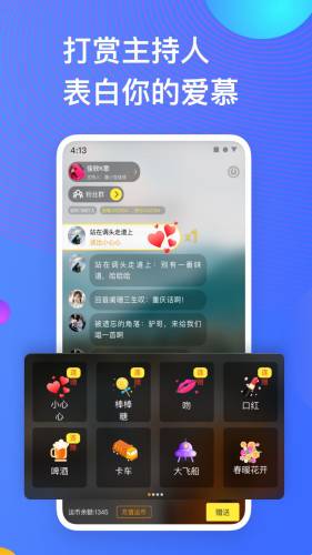 - 【粉丝福利】 一键连麦,一对一与主播实时语音聊天,专属粉丝互动群聊天更痛快!