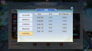 【奖励】:每天前10场战斗可获得额外的奖励,10场后只能获得段位积分;不同段位每天所获得的荣誉奖励不一,段位越高每日结算的荣誉奖励越多。