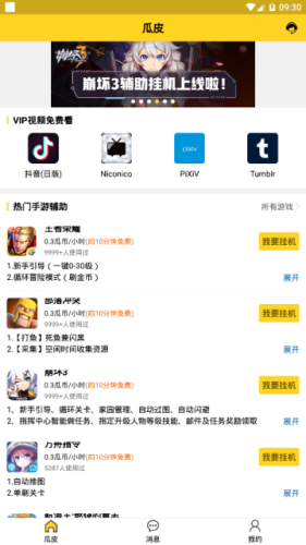 瓜皮挂机是一款专注于游戏挂机托管的平台。使用瓜皮挂机app,就能为你离线挂机打游戏,让你轻松做游戏任务,从此不怕断网、不怕关机。海量的游戏脚本等你来体验哦,有需要的朋友快来下载吧!