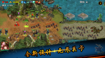 全新设计的无尽关卡,战斗开始后敌军就集合海量部队,对你发起猛烈进攻,不过,无需惊慌,本关卡有丰富的炮塔组合,只要合理的建造塔和操控英雄,就能取得最终的胜利,于百万军中取上将首级!