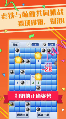超级排雷兵是一个将社交融入到扫雷玩法的特色游戏,这里提供超级排雷兵官网版本下载,你可以和小伙伴们一起回忆童年的好时光,可以通过合作来扫雷,可以进行竞技看看谁最快,多种整合性益智帮助你获得真正的快乐。