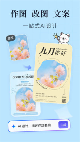 AI智能设计新时代,多种AI图片编辑工具,助力内容生产效率提升!还有50万+原创设计模板,涵盖海报/公众号配图/PPT/电商主图/热点节日/每日一签等众多场景,满足您的不同设计需求。