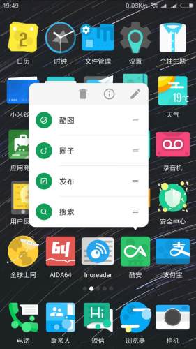 - 支持查看应用信息、修改应用名称和图标、添加小部件、卸载应用、删除(小部件和快捷方式)