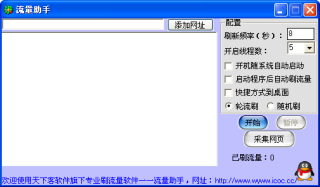 天下客流量助手还具备自动调整内存,不会因为刷得过多而使内存不足,也就是说软件是很稳定运行的,软件有一个采集网页的窗口,可以帮你自动采集网页,这就省去了您一条一条添加网页的麻烦。