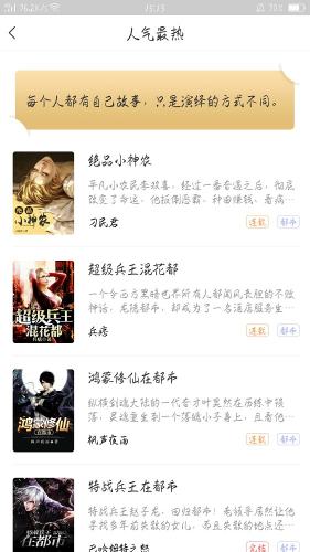 2、经常会有超火的小说推荐,都是不容错过的优质小说,还会根据你看的书籍推荐类似小说给你;