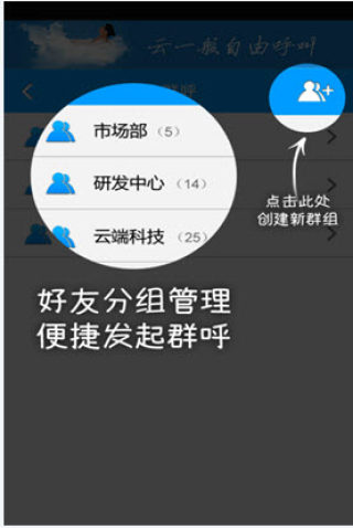 4. 沟通更多彩:既可电话爽聊,又可云信传情,还能一键群呼好友圈,一呼百应会天下,从此轻松交遍世上好友。