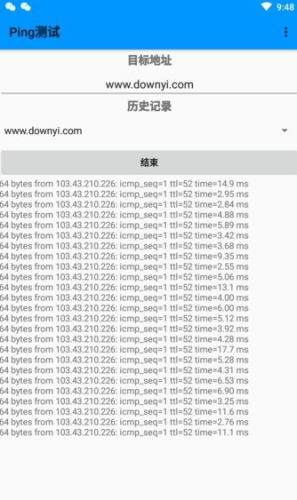 Ping测试,一键检测网络连接状况,操作简单,使用快捷,可以检测到网站解析时间、下载速度、服务器连接时间等多种信息,非常实用,有需要的小伙伴欢迎前来下载体验。