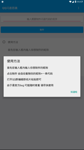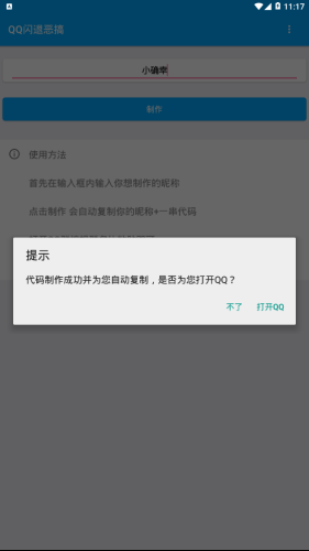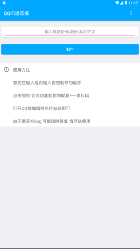 QQ闪退恶搞app,朋友艾特你他的QQ就闪退了,好友之间的娱乐方式提供给用户们,感兴趣的可以一试哦,复制你的昵称和代码就可以玩了。