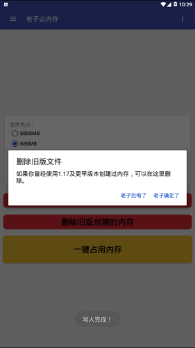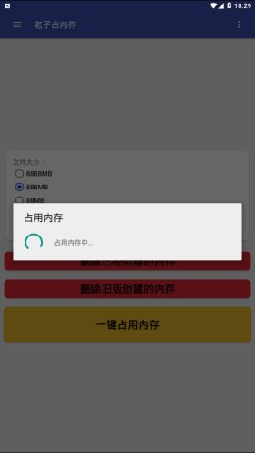 老子占内存app,空间过多就用它来占据内存吧。这是一个非常恶搞的平台,设置文件大小,外部内部储存都可以设置,快来下载玩玩看。
