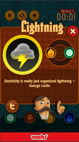 开发智力的小游戏,一个类似于数独的游戏,将水、气、土火四种元素放置如相应格子里,其中同一个格子、横竖同一行里不能放相同元素,有数独基础的人可以玩的很顺利。