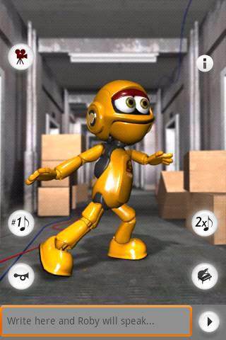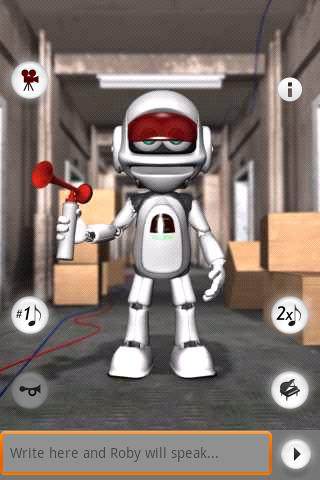 罗比是一个会说话会跳街舞的机器人。他可以按您在键盘上输入的词语说话。他还可以用机器人的声音完整地复述您说的话。会说话系列中的一只可爱的机器人。