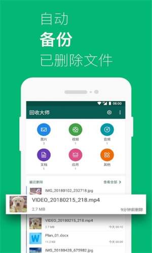 手机数据恢复,支持多种格式的图片、文档、音频、视频、apk文件的恢复,功能强大,帮助用户轻松找回手机丢失的文档。app提供快速搜索、类型过滤功能,让用户能够轻松查看文件信息,选择性恢复需要的文件。