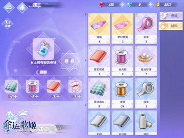 如果手上没有多余的服饰该怎么办呢?不用担心,工坊中还有加工系统!加工需要两种材料,其一是卷轴,可以花费少量金叶子购买;其二是各种布料针线,在日常完成演出跳舞会后系统奖励赠送。两种材料都不需要花一分钱就能获得,妈妈再也不担心我氪金了。