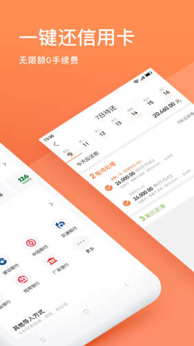3. 一键还款:支持绑定储蓄卡、信用卡,且有还款优惠。
